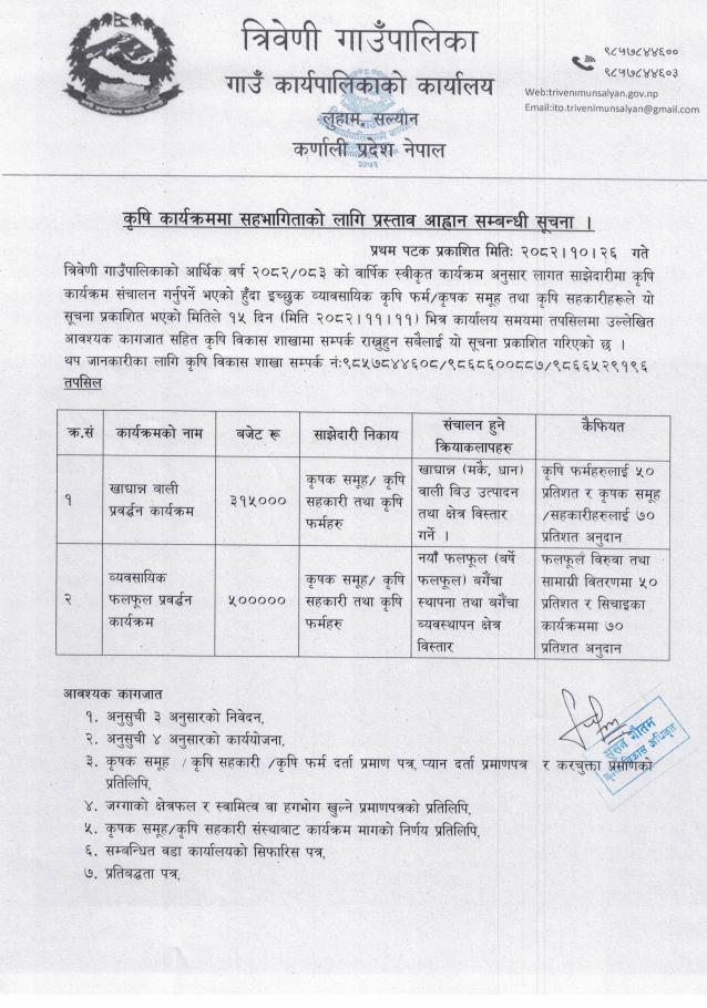 » कृषि कार्यक्रममा प्रस्तावना आह्वान सम्बन्धी सूचना ।
