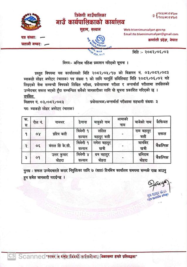 अन्तिम नतिजा प्रकाशन गरिएको सूचना ।