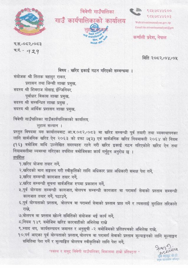 खरिद इकाइ गठन गरिएको सम्बन्धमा ।