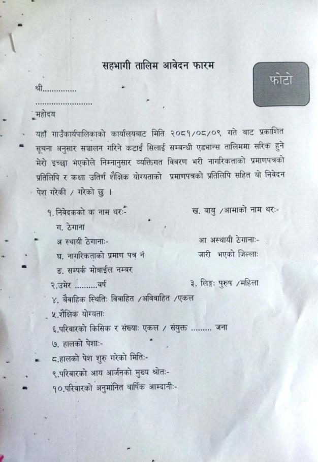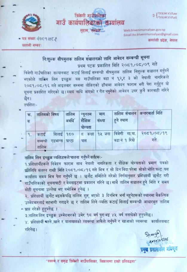 निःशुल्क सीपमूलक तालिम सञ्चालनको लागि आवेदन सम्बन्धी सूचना ।
