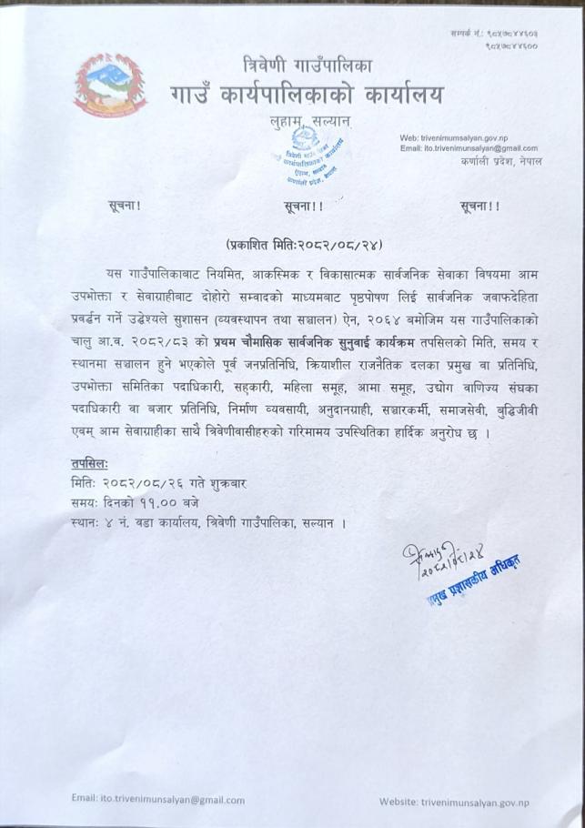 » प्रथम त्रैमासिक सार्वजनिक सुनुवाई कार्यक्रम सम्बन्धी सूचना ।