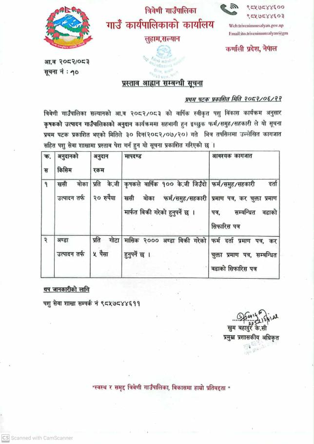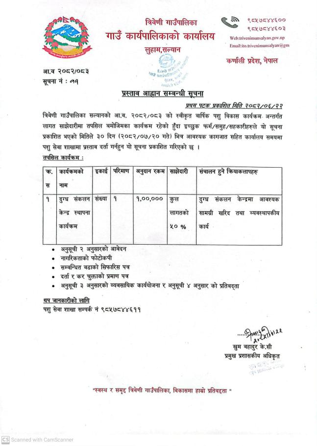कृषि कार्यक्रममा सहभागिताको लागि प्रस्ताव आह्वान सम्बन्धी सूचना ।