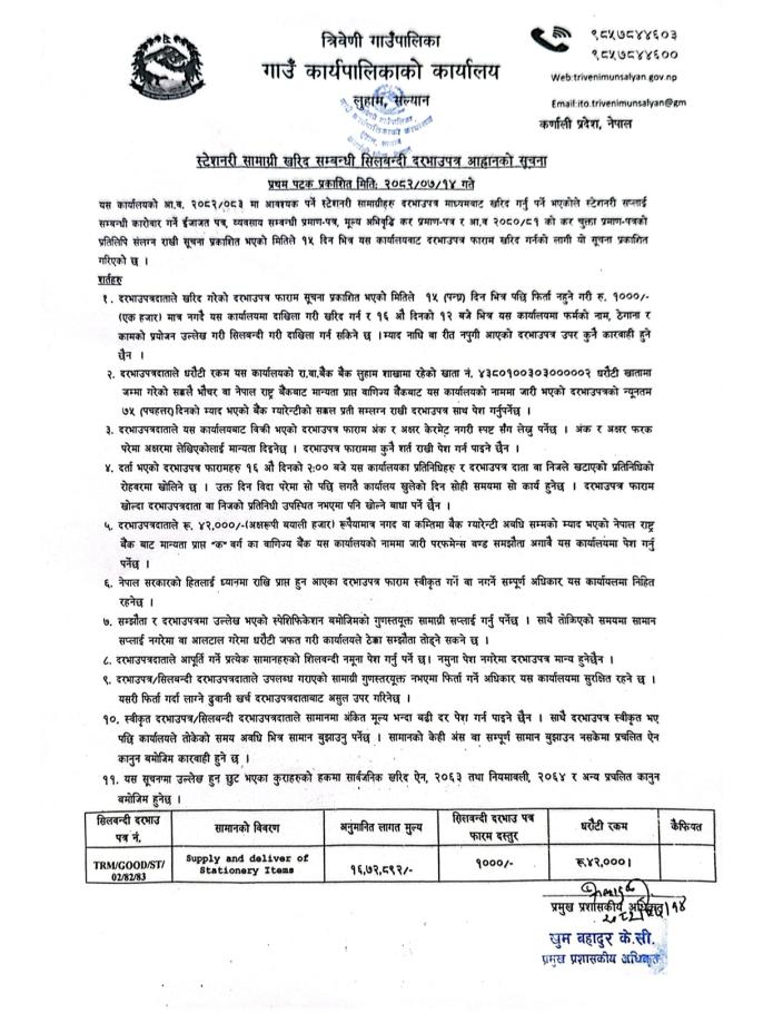 स्टेशनरी सामग्री खरिद सम्बन्धी सिलबन्दी दरभाउपत्र आह्वानको सूचना ।