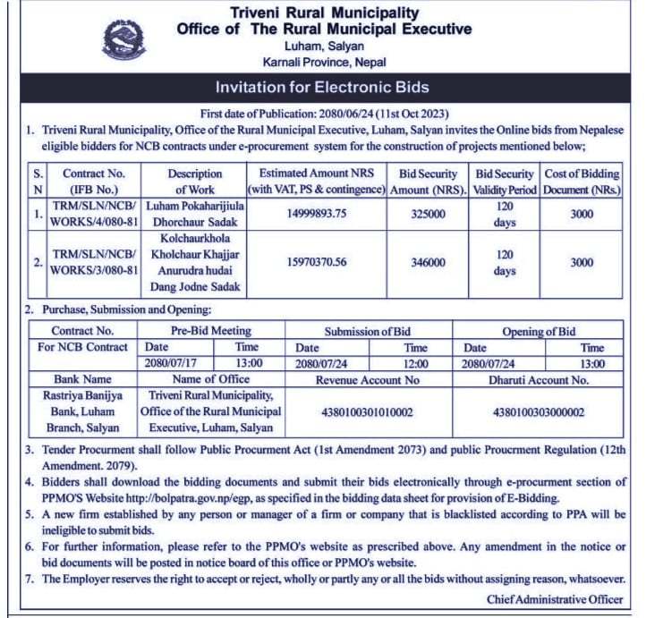 प्राविधिक तथा अार्थिक प्रस्ताव अाह्वानकाे सूचना